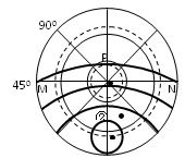 2、单选题 观察下面以极点为中心的地球俯视图,A点在C点的( )方向