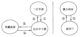 (2)云贵高原的喀斯特地貌分布区,虽然降水充沛,但是由于多溶洞和地下暗河,大量地表水渗入地下;横断山区地势起伏,落差大,水流急,水分的存留时间短。(答中其中1点得2分,答中2点得3分,共3分其他答案合理酌情给分)