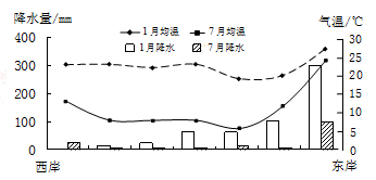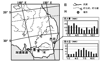 (1)指出悉尼与阿德莱德夏季降水的主要差异,并分析其原因。(5分)