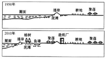 材料二 D湖沿岸某地的“1950年和2010年土地利用状况示意图”