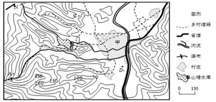 【小题1】甲村落多明清古建筑,是著名的旅游景点。某旅游者想拍摄一张甲村的全景照,正确的拍摄地点和理由是( )