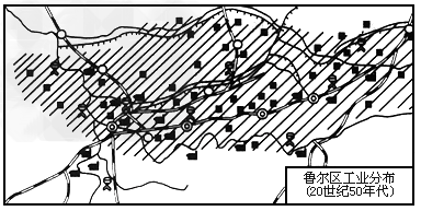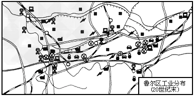 1、综合题 读以下鲁尔区工业分布图回答: