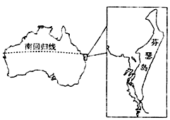 5、单选题 芬瑟岛,是世界上最大的沙岛,总面积1630平方千米(如图所示)。岛上分布的沙漠在世界最古老沙漠中面积最大,现在仍然保留着3万年前的风貌;同时还分布着世界上唯 一生长在沙地上的雨林植被。读图完成下列小题。