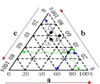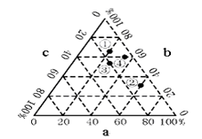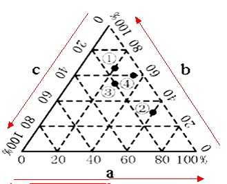 小题1:三角坐标的读法是:①先沿着三个坐标轴数值增大的方向画三个箭头