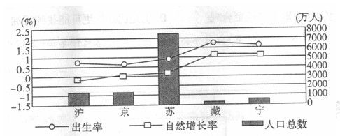小题1:图中给出来的是人口出生率、人口自然增长率和人口总数,通过计算宁夏死亡率并不高,故A错误,因为苏的人口总数最大,根据计算其新增人口最多,所以B正确,而D就错误,通过人口出生率、人口自然增长率的落差或计算,可以得知西藏的死亡率比上海低,故C错误。正确答案是B。