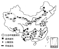 5、综合题  读下图,分析回答我国一些地区出现的生态环境问题的原因及其治理措施。(8分)