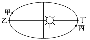 2、单选题 下图为“地球公转轨道示意图”,其中甲、丙分别表示夏至日和冬至日。下列说法正确的是