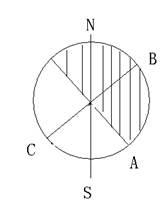 3、单选题 下图所示范围为某卫星拍摄到的地球部分区域投影(阴影部分为黑夜),下图中A点位置为680 S,l000 E,极点位于线段AC之间。完成下列各题。