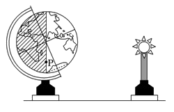 1、单选题  将一盏电灯放在桌子上代表太阳,在电灯旁放置一个地球仪代表地球,拨动地球仪模拟地球运动。读下图完成下列问题。