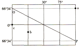 4、综合题  图中OP为昏线。读图,回答下列问题。(24分)(每小题4分)