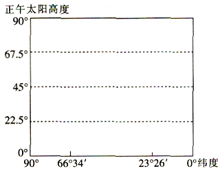 (3)用折线在图中画出该日北半球各地正午太阳高度的分布规律。