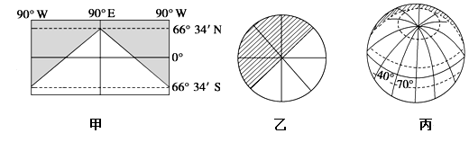 (3)此日为北半球冬至日,北极圈及其以内有极夜现象。甲图符合。此日北半球为全年昼最短夜最长的一天,越向北昼越短夜越长,北极圈极其以内有极夜现象。