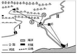 (3)计划修建a村到b村镇的公路,在①、②两个线路方案,较为合理的是?
