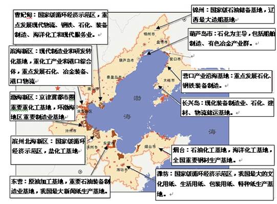 材料二:“环渤海经济圈部分开发区工业布局图”。