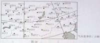 (1)?根据图16中气压分布状况,在图中画出等压线,并用正确的图例画出锋线(4分)