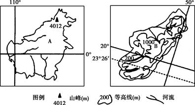 (1) 判断A、B两岛之间的相互位置。(2分)