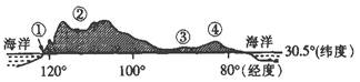 1、单选题 图为世界某大陆地形剖面图,回答题: