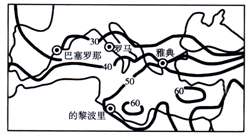 4、单选题 下图示意地中海地区冬雨率等值线分布(冬雨率为冬季降水量占全年降水量的百分率,单位:%)。读图回答下列各题。