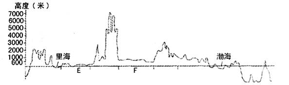 5、单选题 读“沿40°N纬线地形剖面”图,完成1—2题。