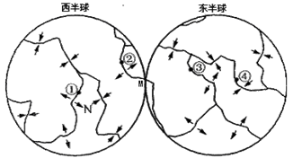 1.结合图示位置判断③表示印度洋板块与非洲板块交界处;④位于亚欧板块与印度洋板块交界处;①位于太平洋板块与南极洲板块交界处;②位于美洲板块与非洲板块交界处。