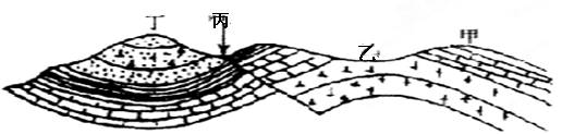 (2)乙处地质构造顶部岩层缺失的原因为 。(2分)
