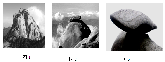 3、单选题 安徽天柱山山体主要由燕山期花岗岩组成,其花岗岩峰丛地貌景观奇特,主峰天柱峰(图1)如巨柱擎天,飞来峰(图2)上飞来石如天外来客(图3),峰雄石奇,是我国5A级景区,2011年被联合国教科文组织评定为世界地质公园。据此回答问题。