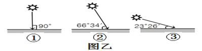 (3)如图乙中正确表示图甲中B地该日正午太阳高度的是?。(2分)