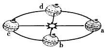 1、单选题 读下面地球公转图(阴影表示夜半球,内圆表示极圈,中心表示北极点),回答: