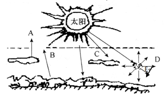 (提示:图中A、C、D字母表示大气对太阳的削弱作用)