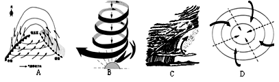 4、单选题 下列图中所显示的天气系统中,北半球没有的是:( )