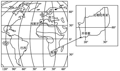 (4)(4分)6-7月为南半球冬季,南非、巴西地处热带、亚热带,此时较为凉爽,适宜体育比赛。