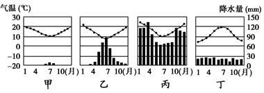 (2)开普敦位于南半球30°到40°之间大陆西岸,受西风带和副热带高气压带交替控制而形成地中海气候,夏季(1月)炎热干燥、冬季(7月)温和多雨,四图中具有此特征的是乙图;荷兰位于40°到60°之间大陆东岸,终年受西风带控制形成温带海洋性气候,终年温和湿润,四图中具有此特征的是丁图。