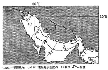 3、单选题 读某区域海水盐度示意图,回答下列各题。