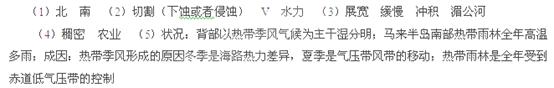(5)简述中南半岛的气候状况及其成因。(5分)