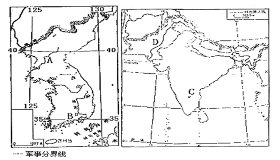 2、综合题 读朝鲜半岛和印度半岛图,回答下列问题。(21分)