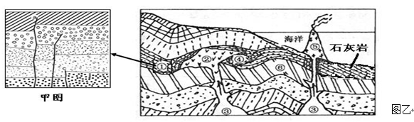 材料一:图乙为地中海沿岸地质剖面图,甲图是图乙岩层局部放大图。