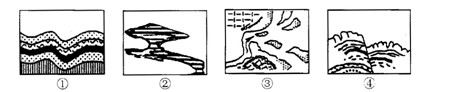 2、单选题 下列各图所示的地质构造或地貌景观,主要由外力作用形成的是