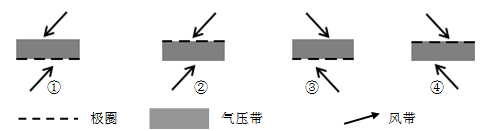 小题1:下图中能正确显示此季节气压带和风带分布情况的是