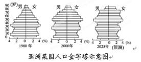 2、单选题 该图反映了亚洲某国人口增长与构成的变化及其发展趋势。据此回答问题。