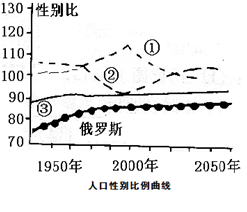 3、单选题 人口的性别结构是指一个国家或地区两性人口数量的比例关系,通常用性别比这个指标加以度量。性别比为平均每100名女性所对应的男性人口数量。图为“四个国家或地区人口性别比例曲线”,读图判断题: