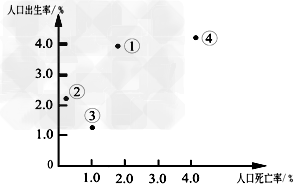 5、单选题 下图反映了四个国家的人口出生率和死亡率,其中,人口增长类型或人口再生产类型属于“过渡型”的是