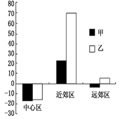 2、单选题 读我国甲、乙两城市不同区域人口变化(%)统计图,完题。