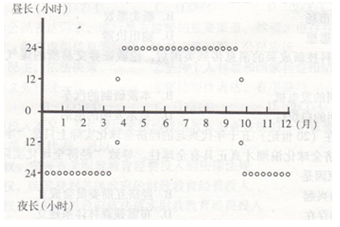 点评:本题解题关键抓住昼夜长短变化和正午太阳高度分布的基本规律。