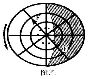 (5)图乙是图甲的北极俯视图。请在图乙上绘出飞机的路径(用箭头表示)(1分)。并注明起飞处E和降落处F。(2分)