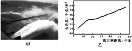 1、单选题 图中甲图为黄河小浪底水库放水排沙图,乙图为放水排沙时小浪底大坝下游沿途含沙量变化图,读图回答题。