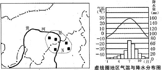 (2)M处位于内蒙古高原,气候干旱,其生态问题是荒漠化;N处位于黄土高原地区,土质疏松,多暴雨,植被稀少,其生态问题是水土流失。