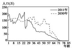 2、单选题 读“我国某省2011年与2030年人口年龄结构比较图”, 近几年,该省可能面临的社会问题是(?)?