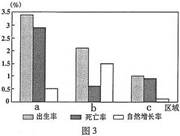1 、a、b区域的人口再生产类型分别属于