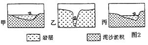 小题2:丙图中河流出现最高水位时,可能是由于出现下列现象中的造成的