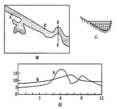 1、单选题 该图中甲是我国东部河流某河段示意图,乙是EF河段河床示意图,丙是河流A、B两水文站测得的水位变化图。据此回答问题。